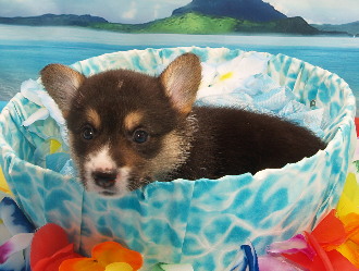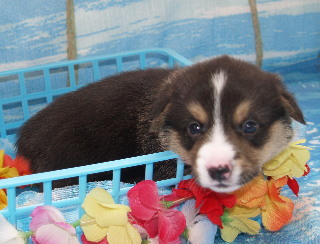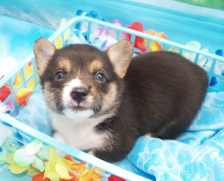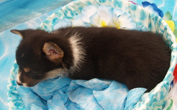 パパのアトムくんはコーギーの名門ミホシャイニングスター出身のブラックヘッドで小柄で可愛い顔と明るい優しい性格のわんこだそうです。